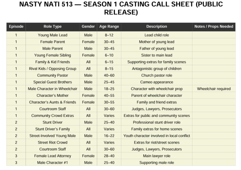 🎬 NOW CASTING: NASTY NATI — “TWO SIDES TRUE CRIMES" [SEASON 1]